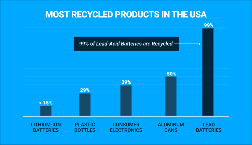 In July 2023, Battery Council International’s National Recycling Rate Study confirmed that lead batteries are the #1 most recycled consumer product in the U.S., with a 99% recycling rate.